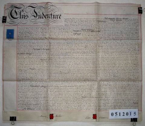 | Parchment : 1 sheet 60cm x 71cm with 2 wax seals 2 signatures and revenue stamp. A second Indenture of 1892 is written on the back. | |||||||||||