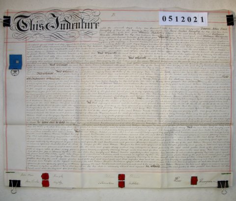 | Parchment : 1 sheet 54cm x 68cm with 5 wax seals, 5 signatures and revenue stamp | |||||||||||