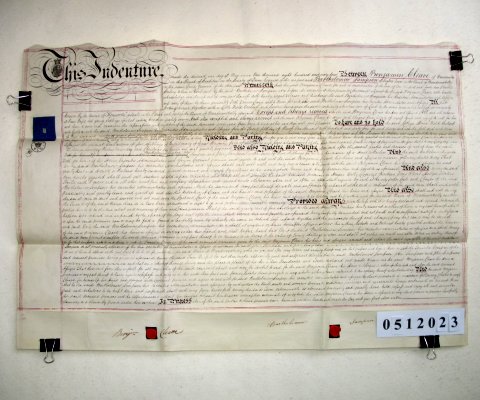 | Parchment : 1 sheet 52cm x 74cm with 2 wax seals, 2 signatures and revenue tam. | |||||||||||