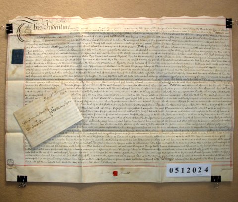 | Parchment : 2 separate Indentures each of 1 sheet. Lease : 37cm x 57cm with 1 signature and wax seal. Release : 55cm x 75cm with 1 signature and wax seal. | |||||||||||||
