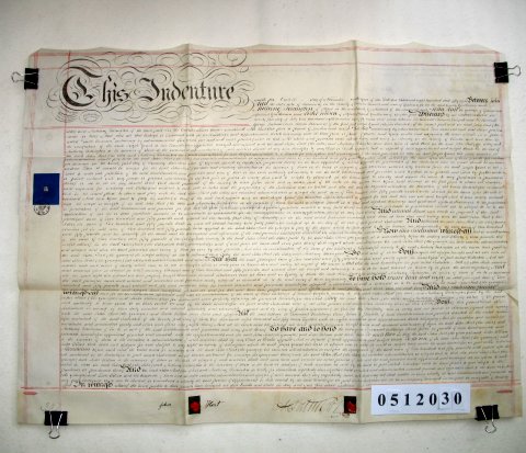 | Parchment : 1 sheet 57cm x 74cm with 2 wax seals, 2 signatures and revenue stamp | ||||||||||||