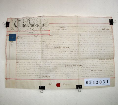 | Parchment : 1 sheet 42cm x 61cm with 1 wax seal, signature and revenue stamp | |||||||||||