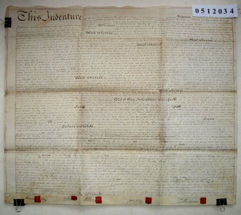 | Parchment : 1 sheet 64cm x 74cm with 5 wax seals, 5 signatures and revenue stamps. | ||||||||||||