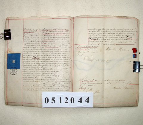 | Parchment : 2 sheets and cover 27cm x 22cm with 1 wax seal, signature and revenue stamp | |||||||||||