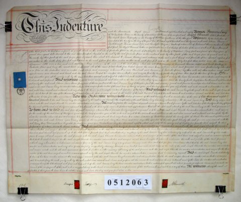 | Parchment : 1 sheet 59cm x 72cm with 2 wax seals, 2 signatures and revenue stamps | |||||||||||||||