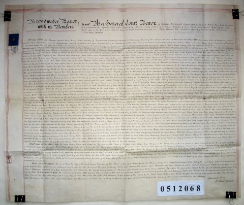 | Parchment : 1 sheet 61cm x 74cm with revenue stamp, signed by the steward of the manor. | |||||||||||