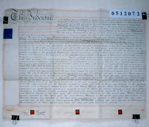 | Parchment : 1 sheet 43cm x 64cm with 3 wax seals, 2 signatures and revenue stamp. | |||||||||||||