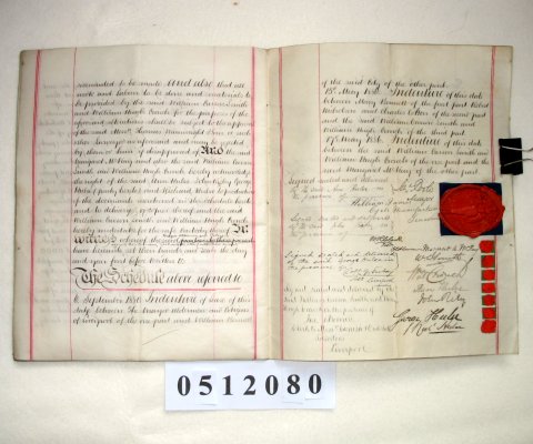 | Parchment : 10 sheets 28cm x 22cm with plan of the property, 7 small wax seals and 1 large seal (cracked) of the Mayor of Liverpool. 8 signatures and revenue stamps. | |||||||||||||