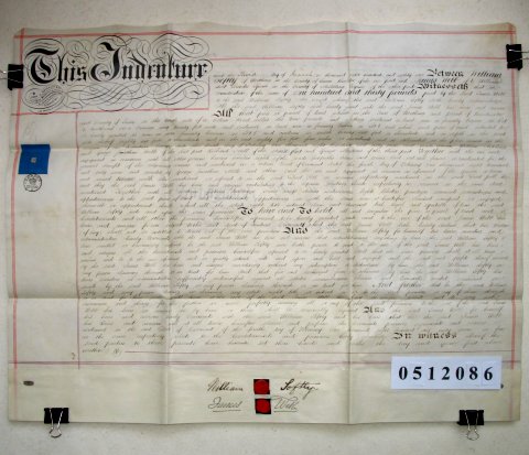 | Parchment : 1 sheet 54cm x 69cm with 2 wax seals, 2 signatures and revenue stamps | ||||||||||||||