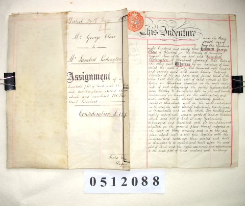 George CLOSE of Blackrod, Lancashire. Engine Man. Lambert PARTINGTON of Blackrod, Lancashire. Bill Poster. SUBJECT The Indenture concerns a plot of land at Pool Green in Blackrod, Lancashire, containing 280 square yards on the South West side of the highway from Chorley to Manchester. We are told that a 999 year lease was granted on this plot in 1877 at a rent of £2/6/8d per annum. Then in 1891 the residue of the lease came into the hands of George Close. By this time a shop and dwellinghouse had been built on the plot. George Close is now selling the residue of the lease to Lambert Partington for £157. | ||||||||||||