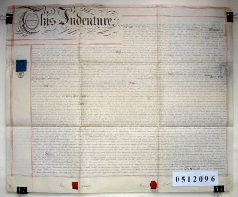 | Parchment : 1 sheet 59cm x 72cm with 2 wax seals, 2 signatures and revenue stamp. A second Indenture of 1858 has been added on the back. | |||||||||||