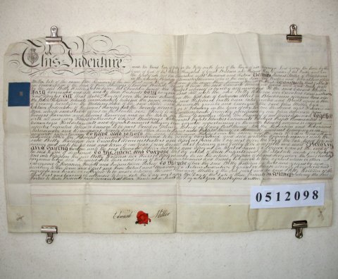 | Parchment : 1 sheet 37cm x 61cm with 1 wax seal, signature and revenue stamp | |||||||||||
