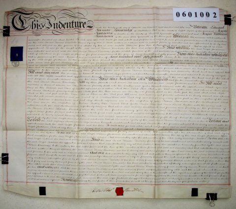 | Parchment : 1 sheet 60cm x 71cm with 1 wax seal, signature and revenue stamp | |||||||||||