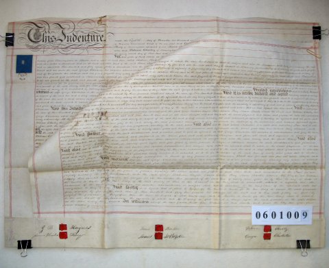 | Parchment : 2 sheets 56cm x 77cm with 6 wax seals, 6 signatures and revenue stamps | |||||||||||||
