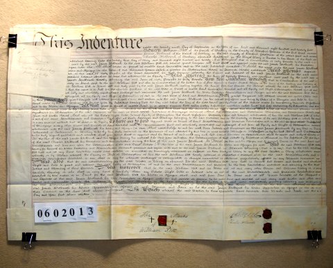 | Parchment : 1 sheet 50cm x 74cm with 3 wax seals, 3 signatures and revenue stamps. A scrap of paper is attached showing (possibly?) a plan of the property. | |||||||||||||||