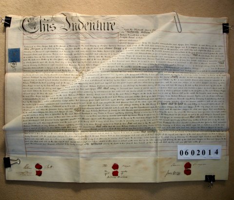 | Parchment : 2 sheets 54cm x 74cm with 6 wax seals, 6 signatures and revenue stamps. | ||||||||||||