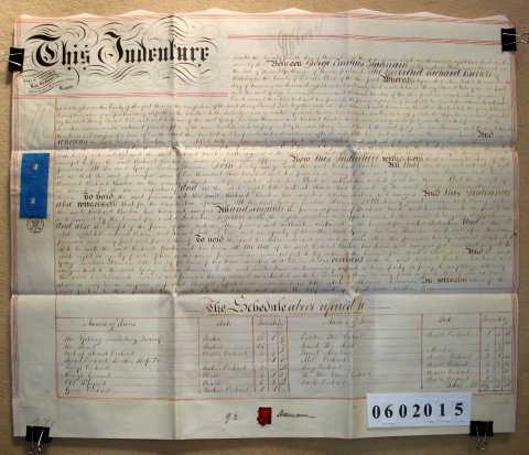 | Parchment :1 sheet 58cm x 71cm with 1 wax seal, 1 signature and revenue stamp. | |||||||||||||