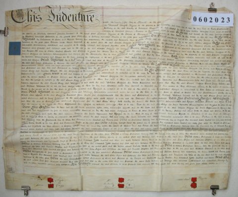| Parchment : 2 sheets 61cm x 78cm with 6 wax seals, 6 signatures and revenue stamps. | ||||||||||||