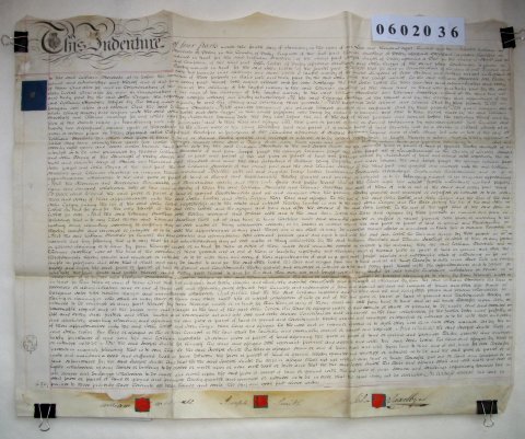 | Parchment : 1 sheet 60cm x 76cm with 3 wax seals, 3 signatures and revenue stamps | |||||||||||
