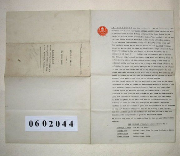 Harriet Eliza WORTLEY the wife of William Allan Stewart WORTLEY of Seven Hills House, Ingham, Suffolk. Farmer. George ALLEN of Wymondham, Norfolk. Retired Police Sergeant. SUBJECT Harriet Wortley is giving an indefinite lease on property in Wymondham to George Allen at a rent of £32 per annum. It consists of a dwellinghouse with garden in Vicar Street. A Schedule lists the contents of the house, but this consists of little except blinds in each room. | ||||||||||||