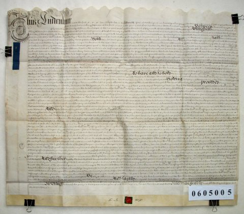 | Parchment : 1 sheet 63cm x 74cm with 1 wax seal, signature and revenue stamps. | |||||||||||