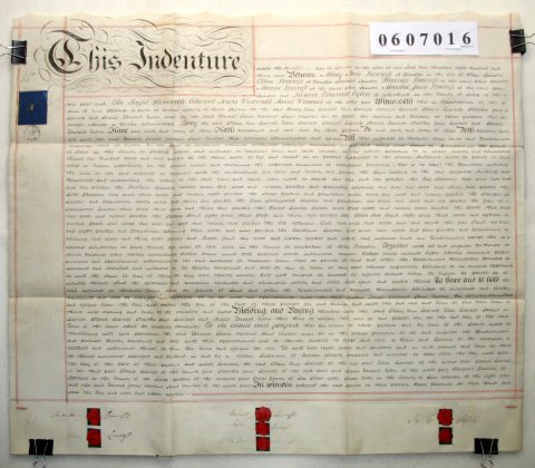 | Parchment : 1 sheet 59cm x 70cm with 7 wax seals 6 signatures and revenue stamp | ||||||||||||
