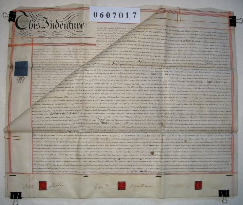 | Parchment : 2 sheets 57cm x 69cm with 3 wax seals, 3 signatures and revenue stamps. | |||||||||||||