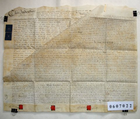 | Parchment : 2 sheets 60cm x 77cm with 3 wax seals, 3 signatures and revenue stamps. | ||||||||||||