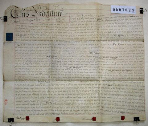 | Parchment : 1 sheet 66cm x 79cm with 4 wax seals, 3 signatures and revenue stamp. | |||||||||||
