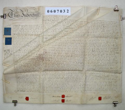 | Parchment : 4 pages 56cm x 72cm with 4 wax seals, 4 signatures and revenue stamps. | |||||||||||