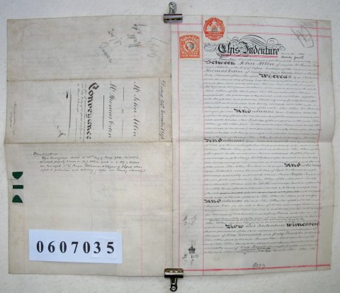 John ALLEN of 26 Thames Street, Parish of St Aldate, Oxford, Oxfordshire. Innkeeper. Thomas EDEN of 14 St Aldates Street, Oxford, Oxfordshire. Chemist. SUBJECT John Allen is selling property in Oxford to Thomas Eden or £140. It consists of: 1. Messuage and workshops at 32 Union Street, Jericho, Oxford. 2. Messuage at 42 James Street, St Clements, Oxford. 3. Plot of land on the Cowley Property Estate. 4. Messuage in Nelson's Yard, St Aldates, Oxford. Details of the purchase of these 4 properties by John Allen between 1874 and 1880 are included. | |||||||||||||