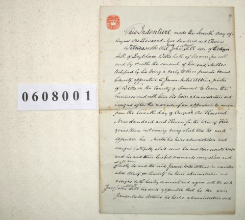 Jonas John Albert HILL of Beryl (?) Lane, Wells, Somerset. Adeliza HILL of Beryl Lane, Wells, Somerset. James Motes ATKINS of Wells SUBJECT Jonas Hill (who is clearly normally called John Hill) is being apprenticed to James Atkins as a printer for 5 years. He is to be paid 4 shillings a week in the first year, rising to 10 shillings a week in the fifth year. Adeliza Hill (the mother of John) has to provide all food. clothing and lodgings, and is liable for any damage her son may cause. | |||||||||||||