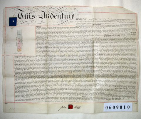 | Parchment : 1 sheet 54cm x 70cm with 1 wax seal, signature and small plan of the property | |||||||||||