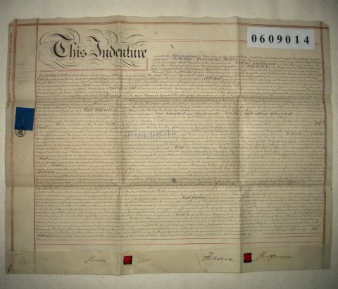 | Parchment : 1 sheet 55cm x 70cm with 2 wax seals, 2 signatues and revenue stamps. | ||||||||||||