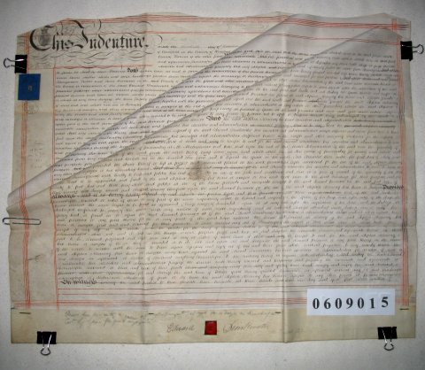 | Parchment : 3 sheets 56cm x 68cm with 1 wax seal, signature and revenue stamp. | |||||||||||||
