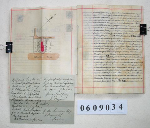 George Morley SAUNDERS of Carlton Chambers, Regent Street, London. Jessy Jane ROGERS of Southview, Churchill Road, Boscombe, Bournemouth, Hampshire. Widow. SUBJECT Counterpart Conveyance of Freehold Ground Rent arising from premises in Churchill Road, Boscombe, Bournemouth, known as Southview. A complete transcription can be provided. This document is being processed and full details will appear as soon as possible. If you wish to know more in the meantime, please contact familychest@aol.com by email and we will respond by return. | ||||||||||||