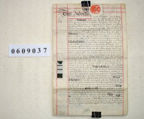 | Parchment : 2 sheets (written on 2 sides) 40cm x 26cm with 4 wax seals, 4 signatures and revenue stamp | |||||||||||