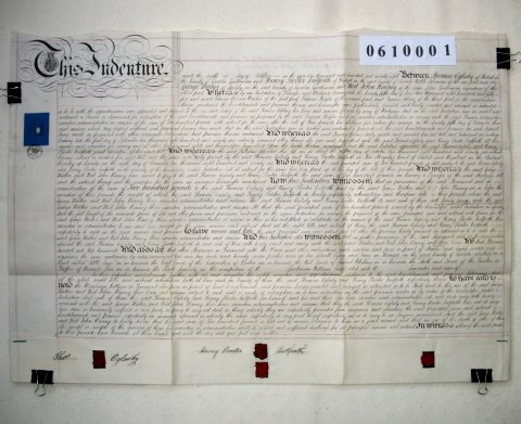 | Parchment : 1 sheet 53cm x 76cm with 4 wax seals, 2 signatures and revenue stamp | |||||||||||