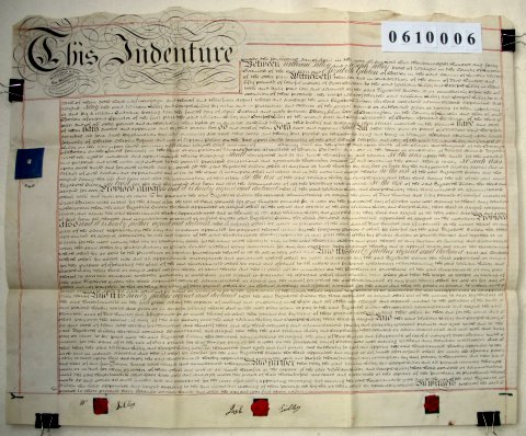 | Parchment :1 sheet 60cm x 72cm with 3 wax seals, 2 signatures and revenue stamp. | |||||||||||