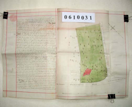 | Parchment : 3 sheets 40cm x 26cm including a large plan of the property. 2 wax seals, 2 signatures and revenue stamp. | |||||||||||