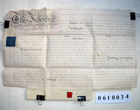 | Parchment : 1 sheet 39cm x 55cm with 1 wax seal, signture and revenue stamp. | ||||||||||||