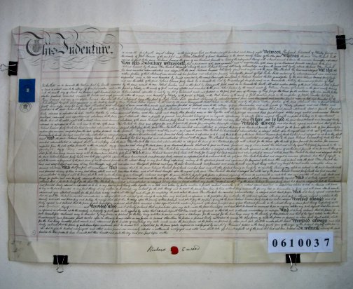 | Parchment : 1 sheet 54cm x 78cm with 1 wax seal, signature and revenue stamp | |||||||||||||