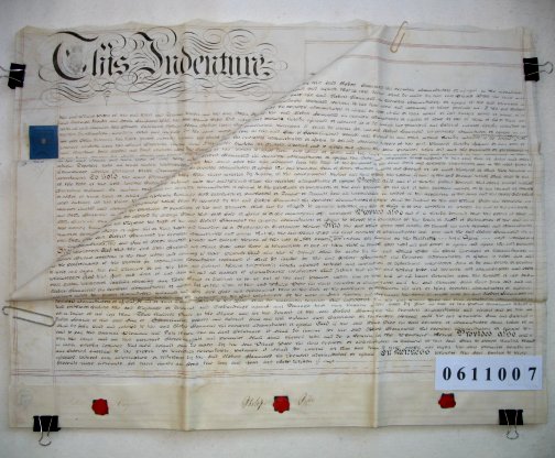 | Parchment : 2 sheets 55cm x 73cm with 3 wax seals, 2 signatures and revenue stamp. | |||||||||||||||