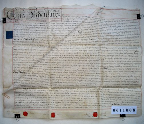 | Parchment : 2 sheets 64cm x 79cm with 3 wax seals, 3 signatures and revenue stamps | |||||||||||||||