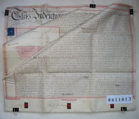 | Parchment : 5 sheets 60cm x 72cm with 3 wax seals, 2 signatures, revenue stamps and plan of the property on the third sheet. | ||||||||||||