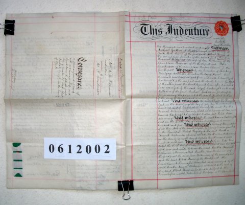 | Parchment : 2 sheets 38cm x 25cm with 4 wax seals, 4 signatures and revenue stamp | ||||||||||||