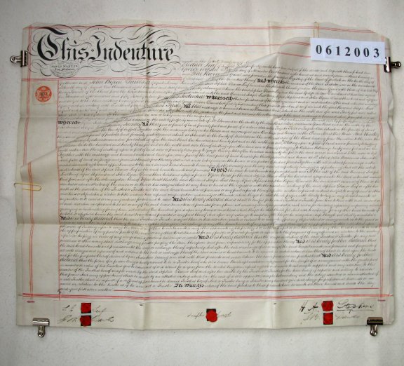 | Parchment : 2 sheets 57cm x 69cm with 5 wax seals, 5 signatures and revenue stamps | |||||||||||
