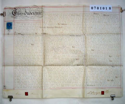 | Parchment : 1 sheet 59cm x 77cm with 2 wax seals, 2 signatures and revenue stamps. | ||||||||||||