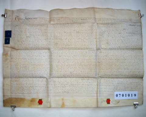 | Parchment : 1 sheet 62cm x 86cm with 2 wax seals 2 signatures and revenue stamp | ||||||||||||
