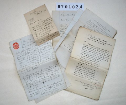 | Paper : 8 items of correspondence, mostly on sheets 34cm x 21cm. One sheet carries a revenue stamp. | |||||||||||